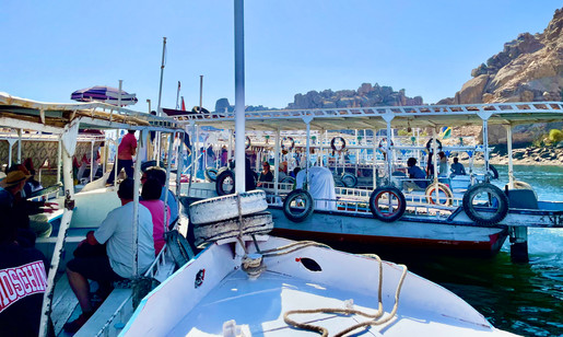 We returned to the Sun Goddess for our last buffet lunch on board and then shortly after that departed again for a cruise on a smaller, traditional boat called a felucca. These wooden sailing vessels hold about 10 passengers and crew and, while still a popular mode of transportation for locals, are frequently used for slower paced tourist excursions. We sailed along the Nile around the grey boulders of Elephantine Island and saw the plunging dunes of the Sahara as they cascaded into the river. As we sailed, two young boys on a paddleboard came alongside the boat and grabbed onto it, allowing the boat to pull them along as they sung us a song. A clever stunt to earn a few bucks, it was entertaining, and they succeeded. We also passed by the beautiful Kitchener's Island, named after a counsel-general of Egypt and now home to a magnificent botanical garden which he created. This hour or so cruise was the perfectly relaxing way to spend our last free time in Egypt. After the outing, we returned to the ship for an afternoon tea followed by dinner and entertainment with Nubian musicians and dancing.